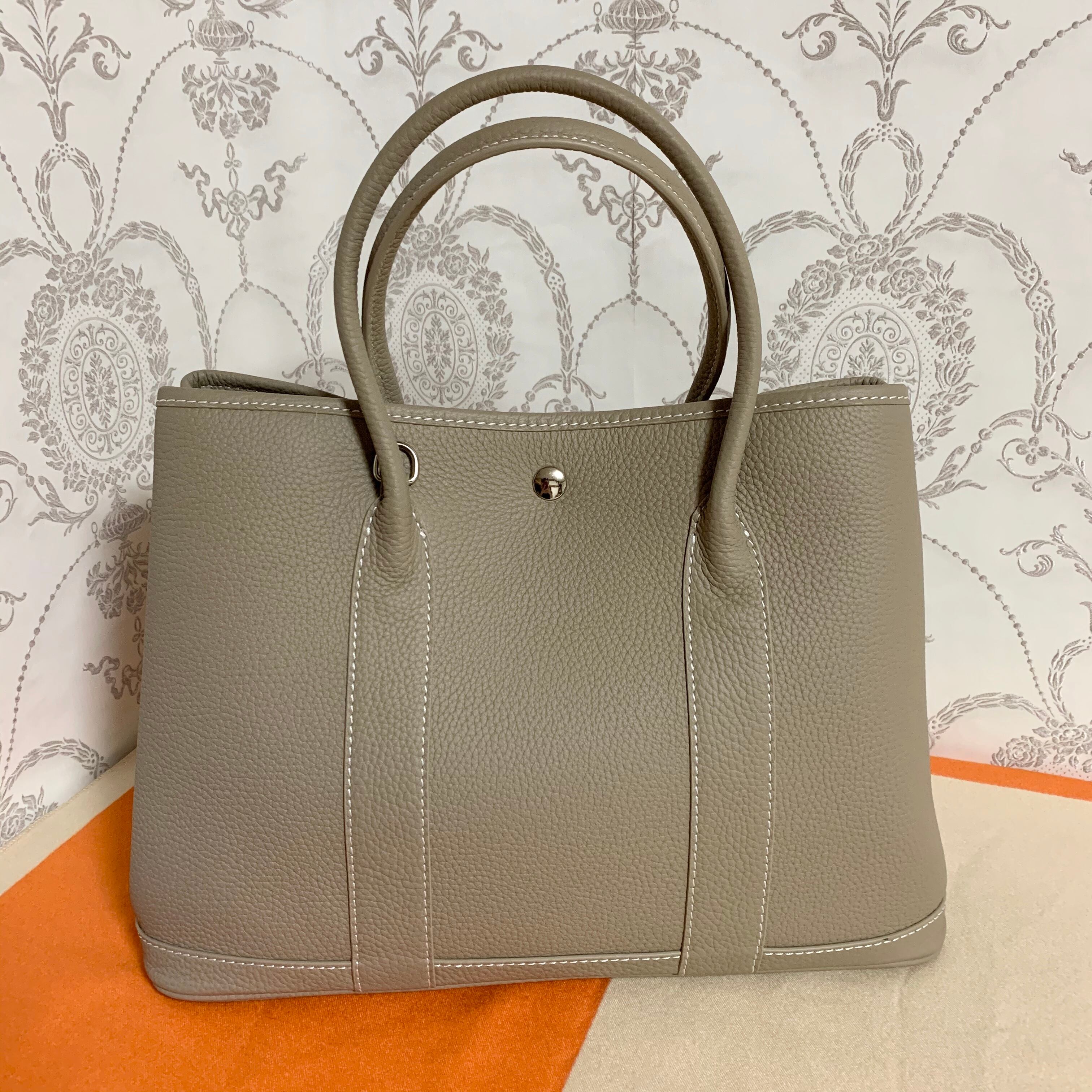 【牛本革】トートバッグ ポーチ リボンスカーフ 付き グレージュ L
