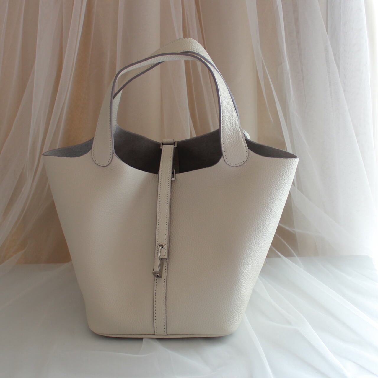牛本革 キューブバッグ シルバー金具 M アイボリー