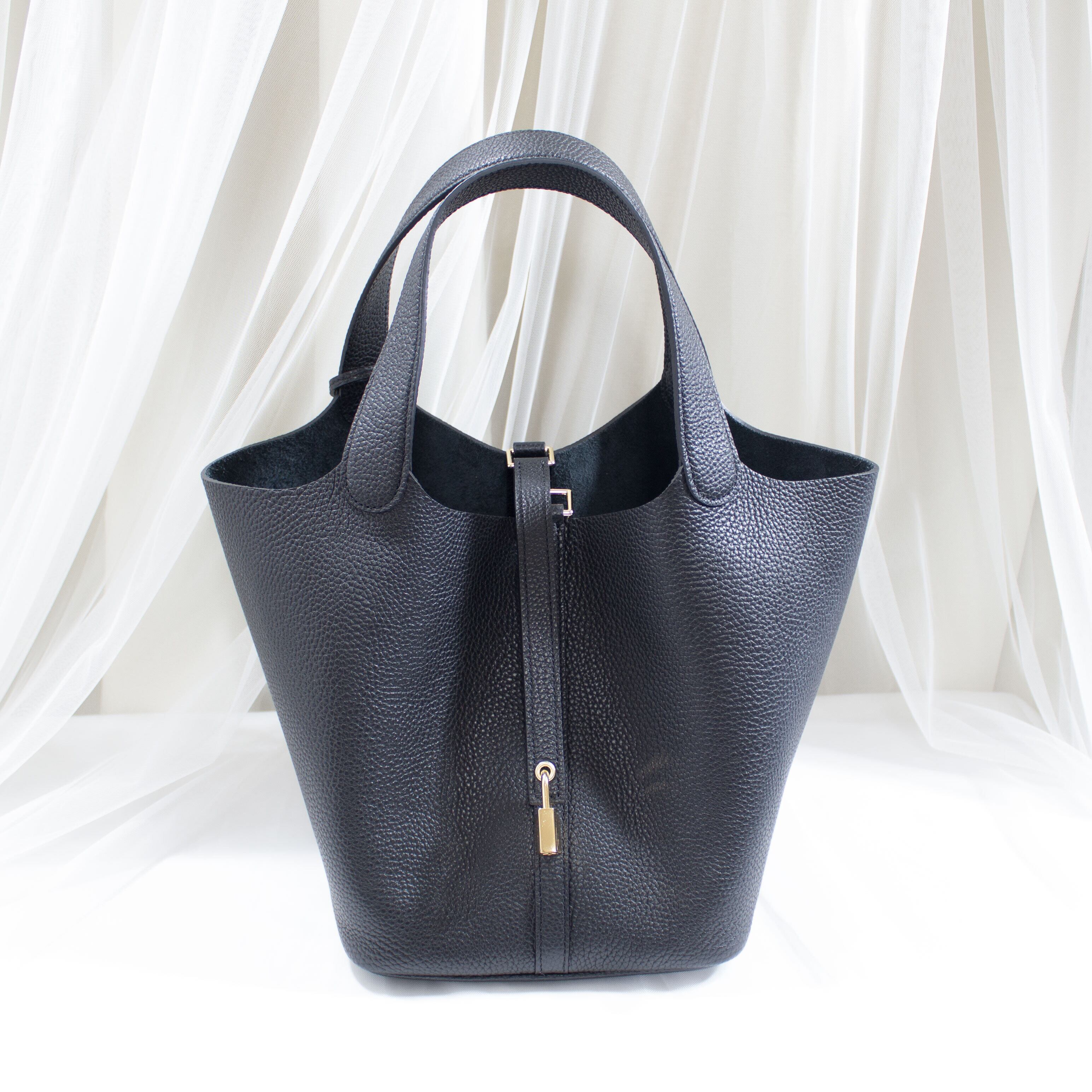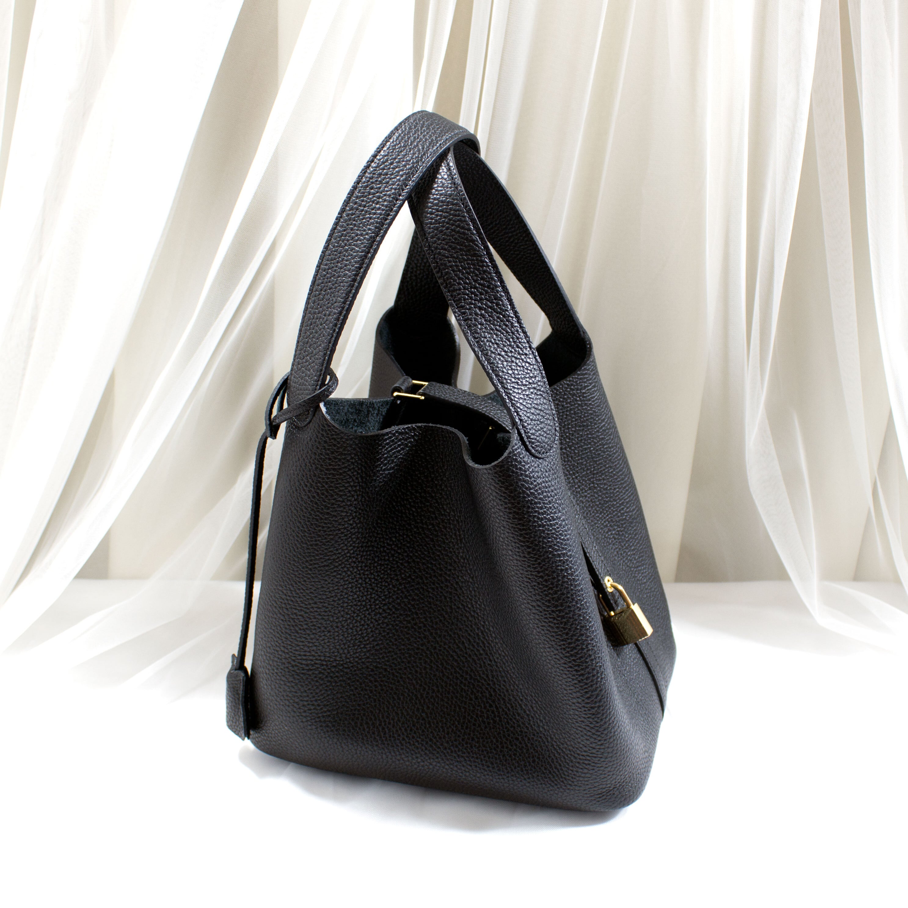 牛本革 キューブバッグ ゴールド金具 M ブラック