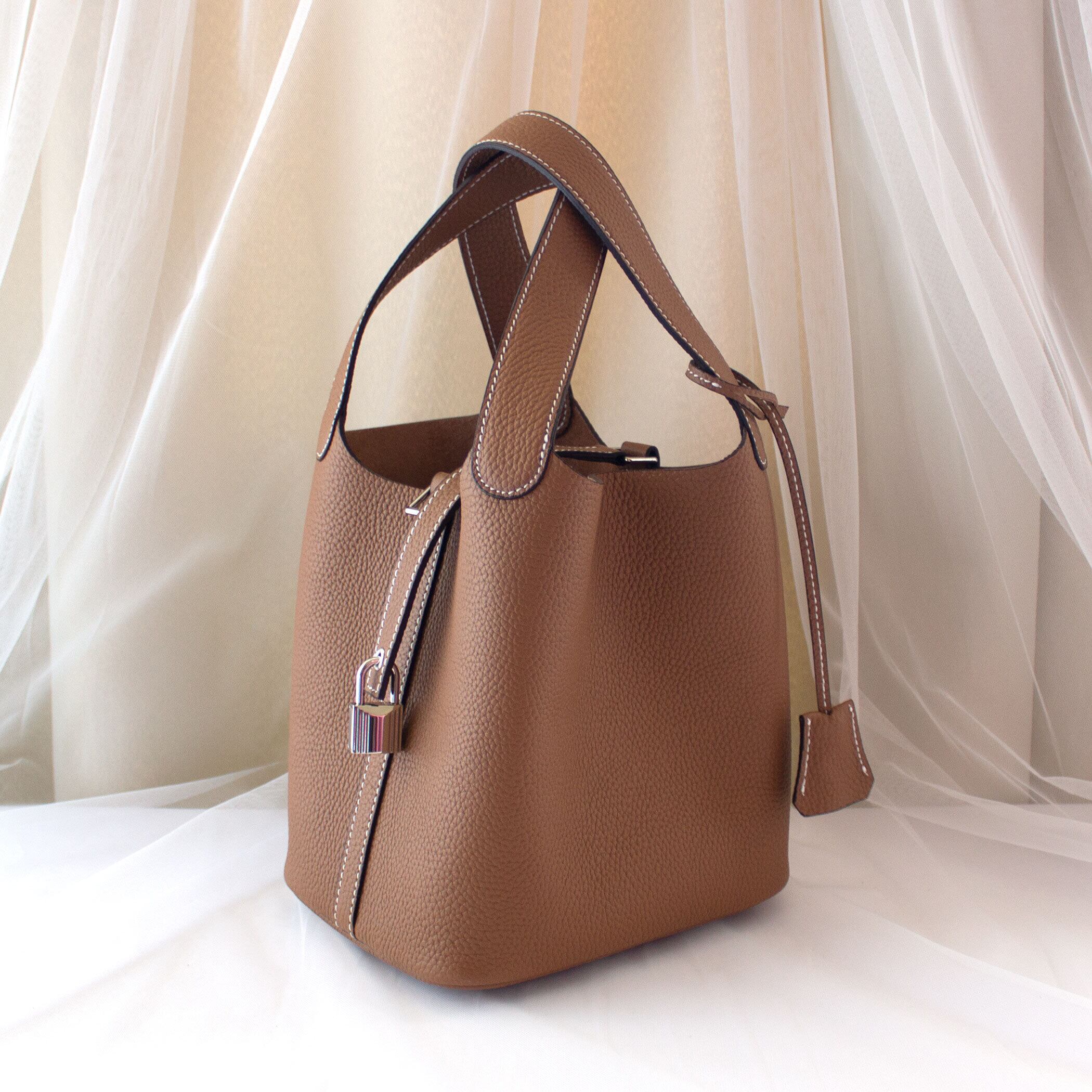 牛本革 ハンドバッグ シルバー金具 PMサイズ キャメルブラウン