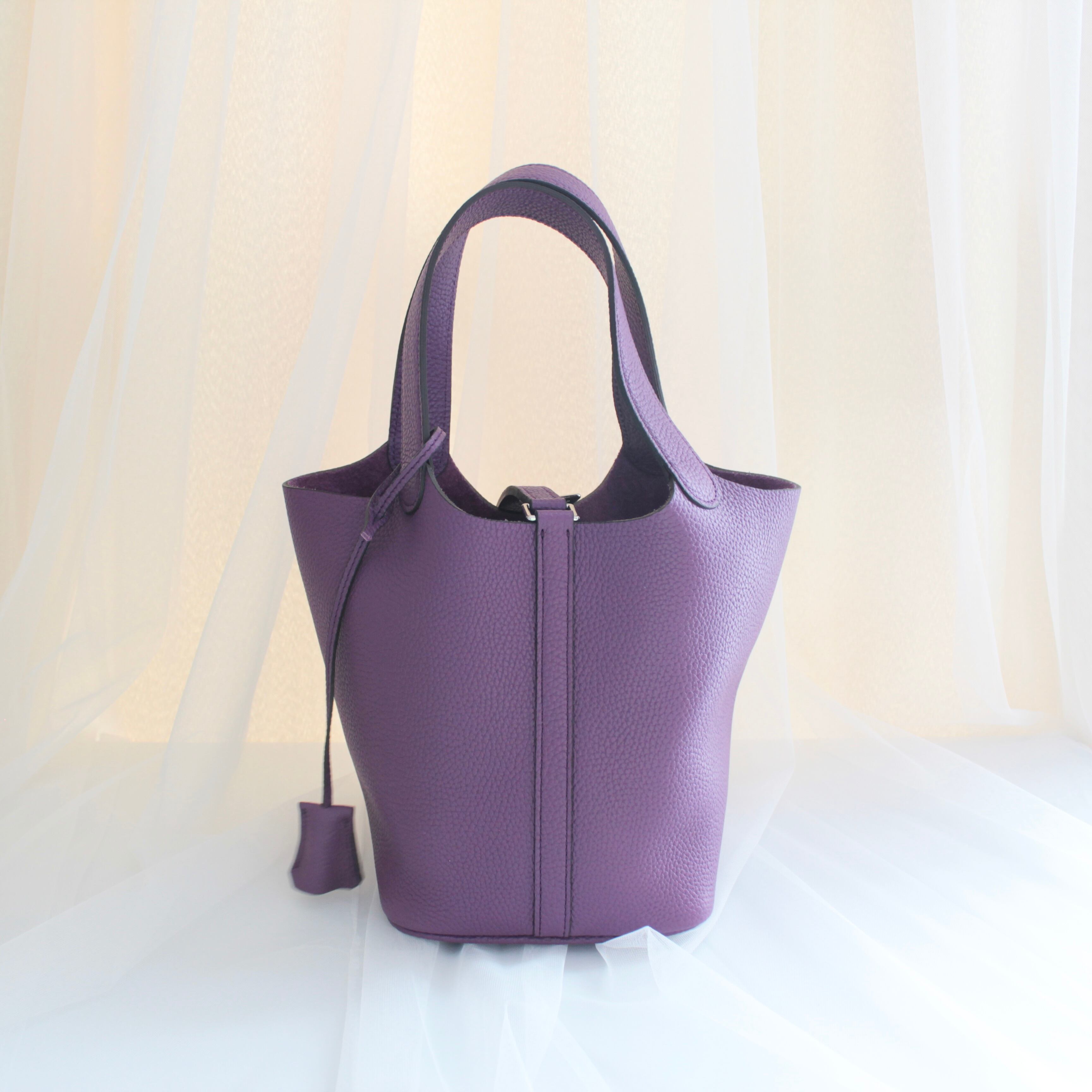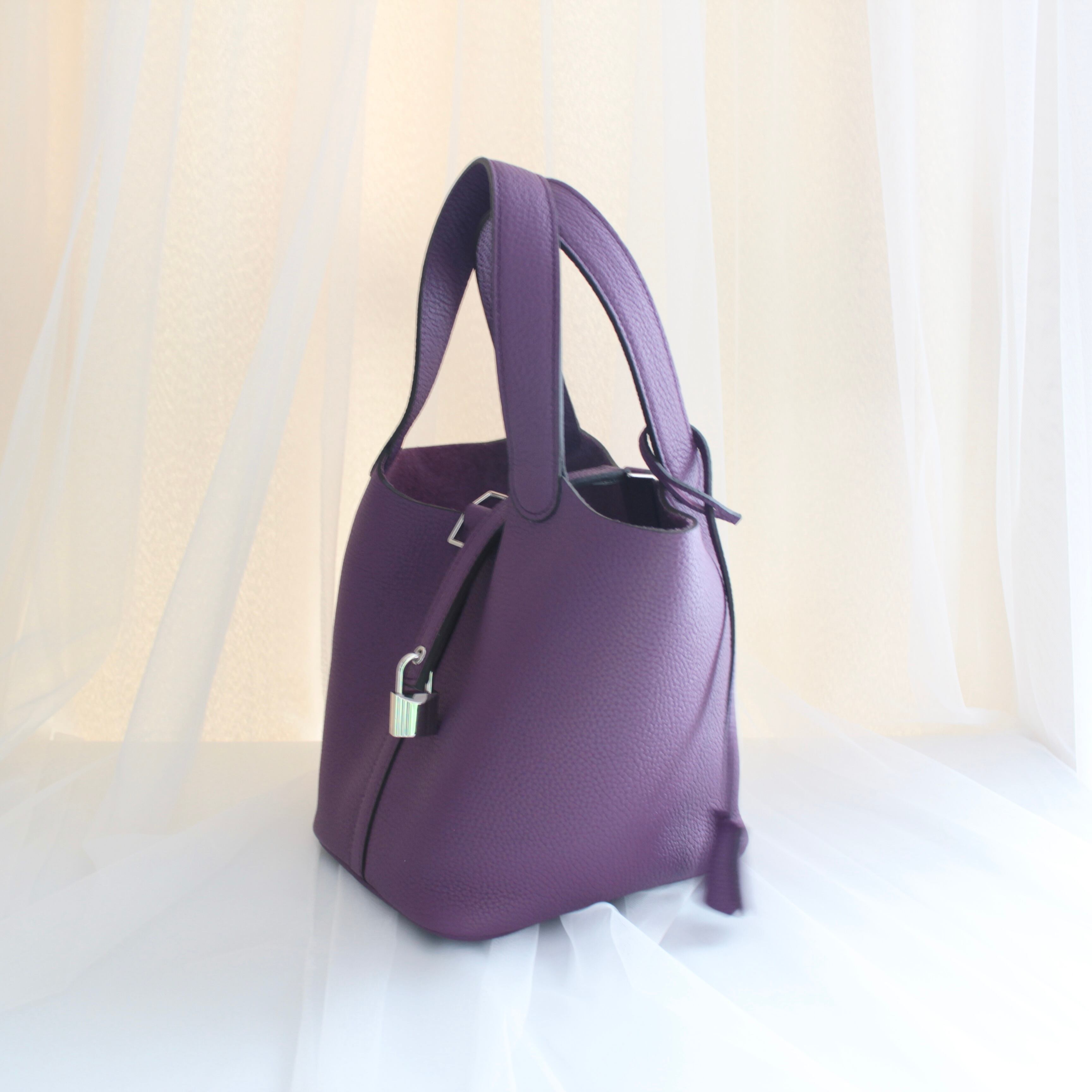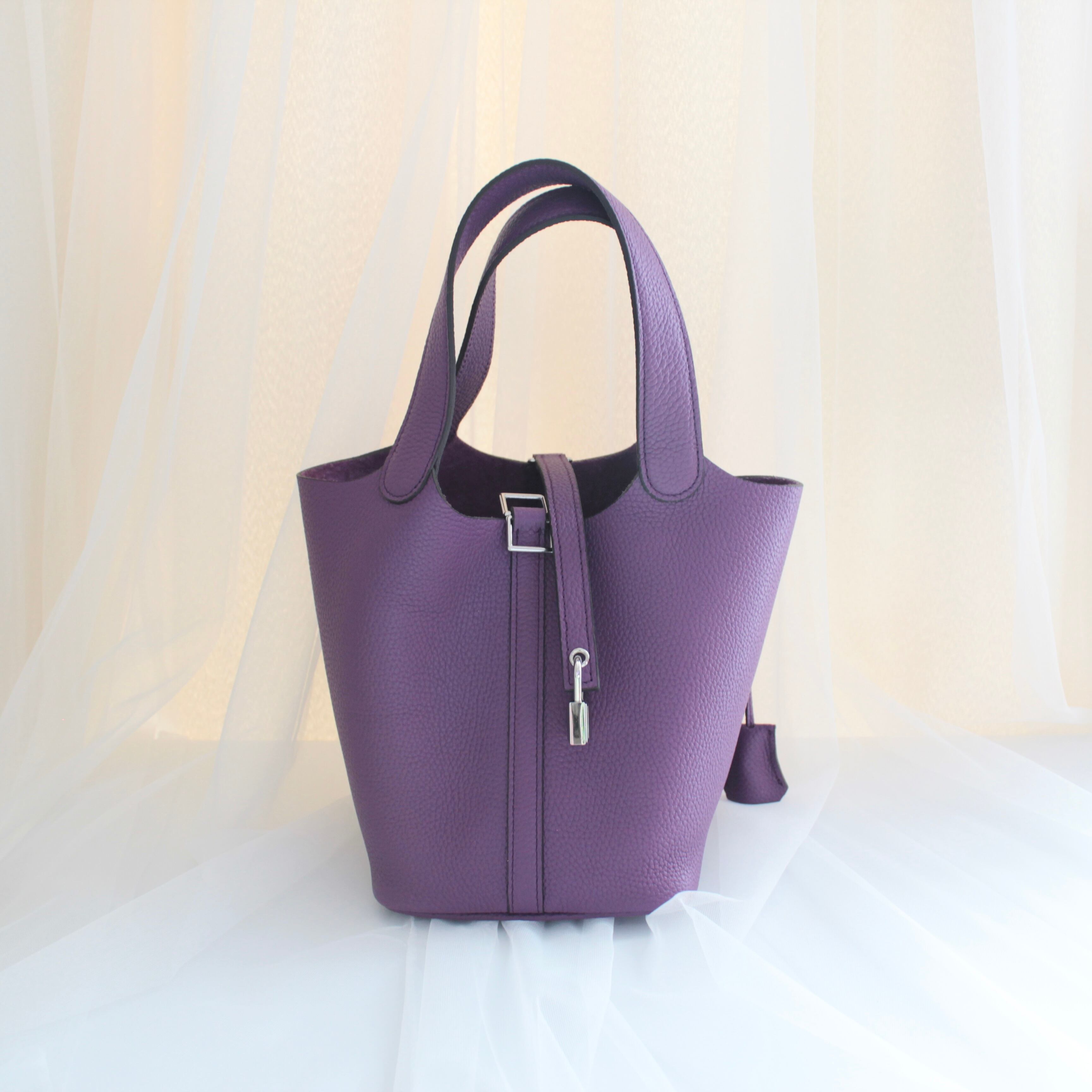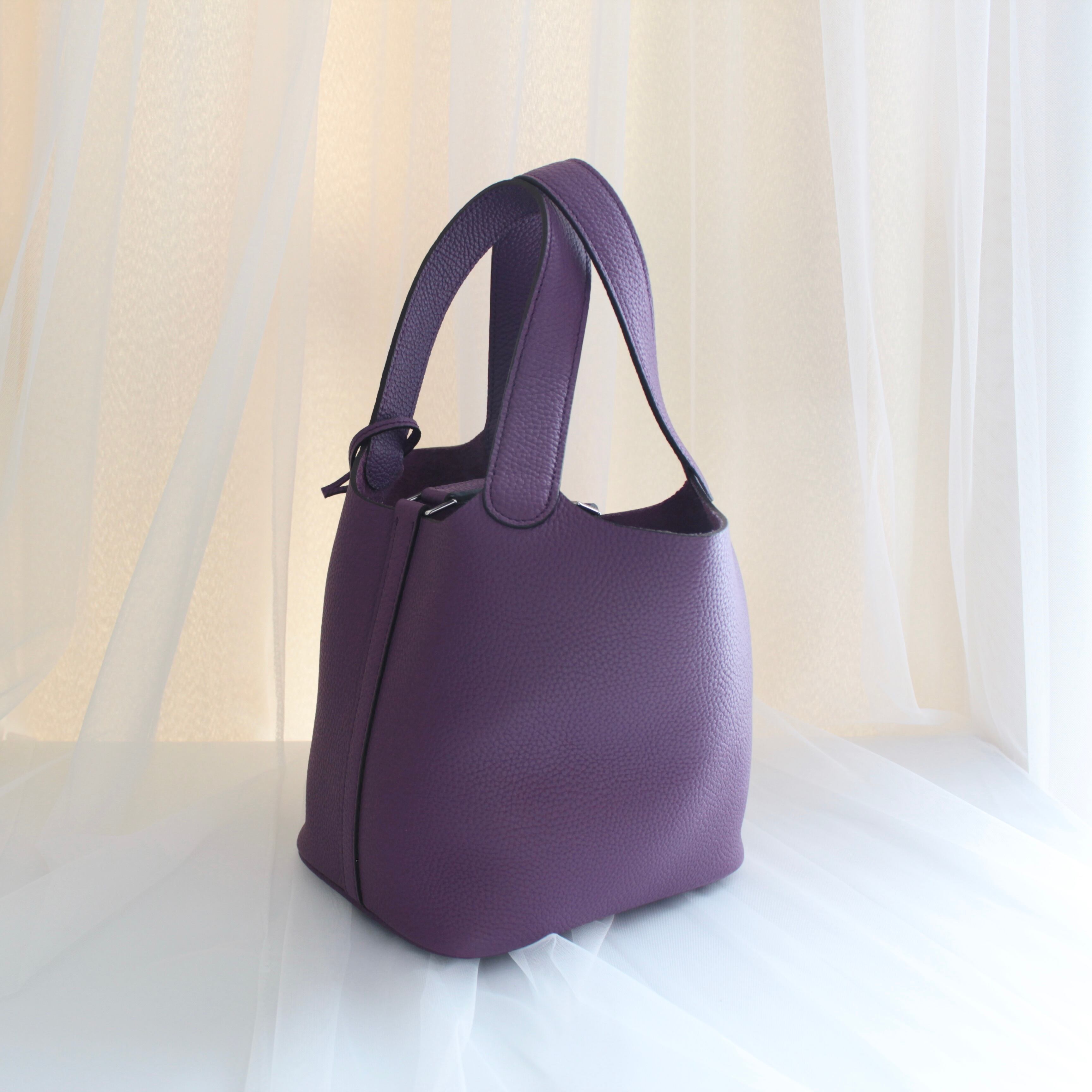牛本革 ハンドバッグ シルバー金具 PMサイズ パープル